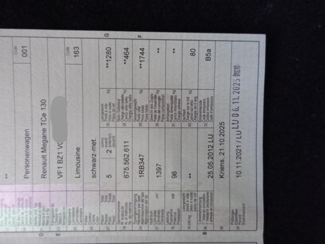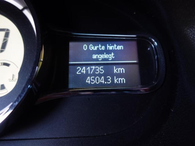 Klimaanlage Airbag Fahrer und Beifahrerseite Elektronische Wegfahrsperre Zentralverriegelung Elektrische Fensterheber vorne + hinten Aussenspiegel elektrisch verstellbar und heizbar Bordcomputer Seitenairbag Fahrer und Beifahrerseite Nebelscheinwerfer Höhenverstellbarer Fahrersitz manuell Geteilte Rücksitzlehne 1/3, 2/3 Lenkrad verstellbar ABS und EBV Elektr. Bremskraftverteilung Lederlenkrad mit Lederschaltknauf Deaktivierung Beifahrerairbag Lendenwirbelstütze Fahrersitz Bremsassistent EBA Isofix-Kindersitzbefestigung Windowbags vorne + hinten ESP/ ASR/ CSV Tempomat mit Geschwindigkeitsbegrenzer Regen- und Lichtsensor Elektrische variable Servolenkung Reifen-Pannenset Show-me-home Lichtfunktion Renault Chipkarte Keyless LED Tagfahrlicht Aussenspiegel elektrisch einklappbar Leichtmetallfelgen 17" schwarz Radio/ CD/ MP3/ Bluetooth/ Bose Navigationssystem TomTom mit Europakarte Keine Gewähr auf die Angaben der Serienausstattungen