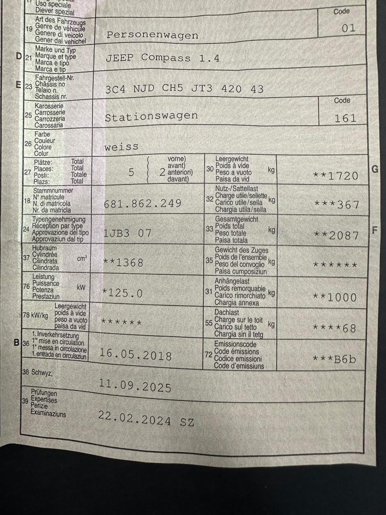 keine Werkstatt Prüfung durchgeführt / Service Heft fehlt - nicht auffindbar / möglicher Eintausch auf neuen Jeep Compass / Kunde fährt : KM Stand +/- / Anhängekupplung