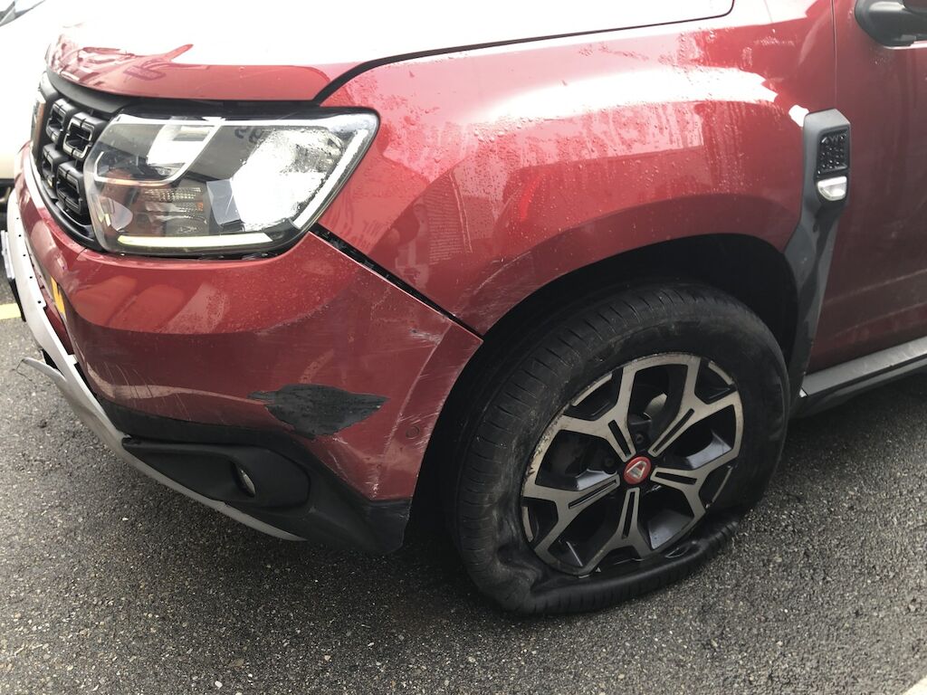 Danno da collisione ant. sx e fianco sx con parte inf. Deformato sospensione sx, lacerato cerchio e pneumatico. Lacerato scudo paraurti completo e parafango sx., deformato parafango post. sx Motor Getriebe Vorderachse Hinterachse Airbags ausgelöst: 0 unbekannt ( Abfallcode 16.01.04ak )