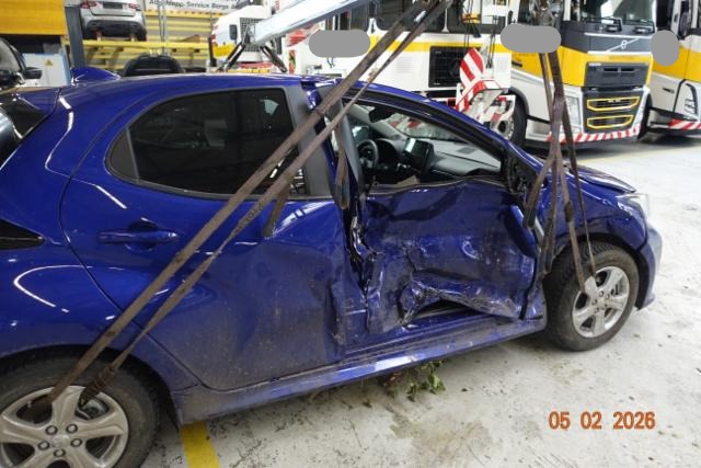 Rechte Seite beschädigt. Anstoss rechts im Bereich der A-Säule. Anstoss rechts im Bereich der B-Säule. Schweller rechts ist eingedrückt. Tür vorne rechts ist eingedrückt. Tür hinten rechts ist eingedrückt.