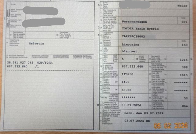 Airbag Fahrer und Beifahrerseite Elektrische Fensterheber vorne Aussenspiegel elektrisch verstellbar und heizbar Seitenairbag Fahrer und Beifahrerseite Zentralverriegelung mit Fernbedienung Mittelarmlehne vorne Kopfairbag vorne und hinten Audiofernbedienung am Lenkrad Bodenteppiche ABS und EBV Elektr. Bremskraftverteilung inkl. BA Stabilitätskontrolle VSC + Traktionskontrolle TRC Rückfahrkamera Adaptiver Tempomat ACC Einzeln abklappbare Rücksitzlehnen 60/40 Stahlfelgen 15" HSA Berganfahrassistent Reifendruck-Überwachungsanzeige Fernlichtassistent Klimaautomatik Spurhalteassistent LKA Pre Crash System PCS LED Tagfahrlicht LED Rückleuchten Start + Stopp Automatik Details siehe gültige Preisliste des Importeurs Keine Gewähr auf die Angaben der Serienausstattungen Verkehrsschild-Erkennungssystem Connect Apple Car Play/ Android Auto Garantie 10 Jahre/ 185'000 km Toyota Touch 3/ MP3/ Bluetooth/ DAB+