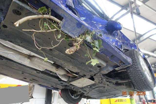 Vorderachse ist beschädigt. Aufhängungsteile vorne rechts beschädigt. Lenkgetriebe ist beschädigt.