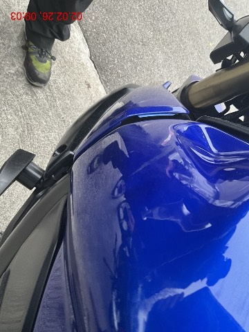 Seite rechts : Schalldämpfer, Spoiler unten, Lenker, Rückspiegel, Kupplungshebel, Fussbremshebel, Abdeckung vorne rechts beschädigt. / Linke Seite diverse Vorschäden : Lenkerende, Rückspiegel, Sturzpad, Abdeckungen , Tank leichte Beule