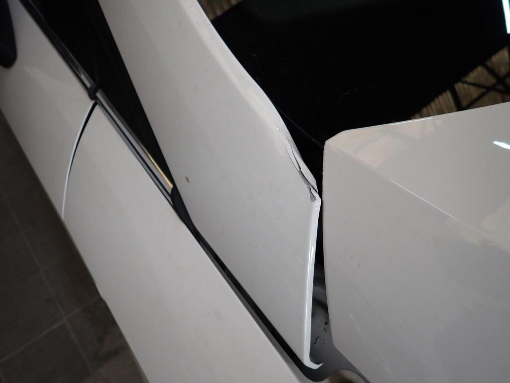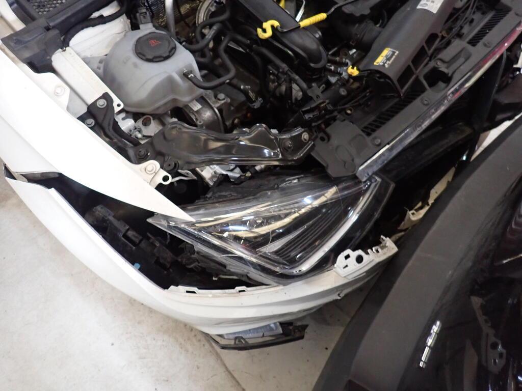 Choc frontal et central arrière Avant du véhicule et arrière entièrement endommagés. Moteur démarre mais ne tourne pas avec tous les cylindres et fonctionne, mais ralenti instable. Côté gauche, droit, partie avant, tous les radiateurs, tableau de bord endommagés. Choc sur le montant "A" gauche. Choc sur le montant "A "droit. Arrière enfoncé. Capot moteur, tôle frontale, arrière, fond de coffre, hayon enfoncés. Ailes arrières gauche enfoncées et refoulées. Passage de roue avant droite et gauche enfoncés. Longeron avant droit et gauche refoulés. Longeron arrière gauche et droit pliés et refoulés. Echappement plié. Risques sur le moteur, la boite de vitesses, l'essieu avant, l'essieu arrière, la direction et le différentiel. Le véhicule ne peut pas rouler et ne peut pas être remorqué. Ceintures de sécurité déclenchées. Garniture de pavillon déchirée. Divers éléments de carrosserie sont légèrement endommagés. Risques sur les boîtiers de command et les torches électriques.