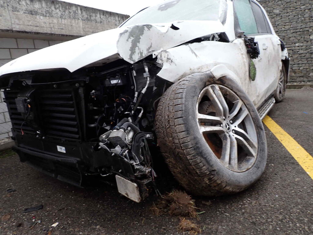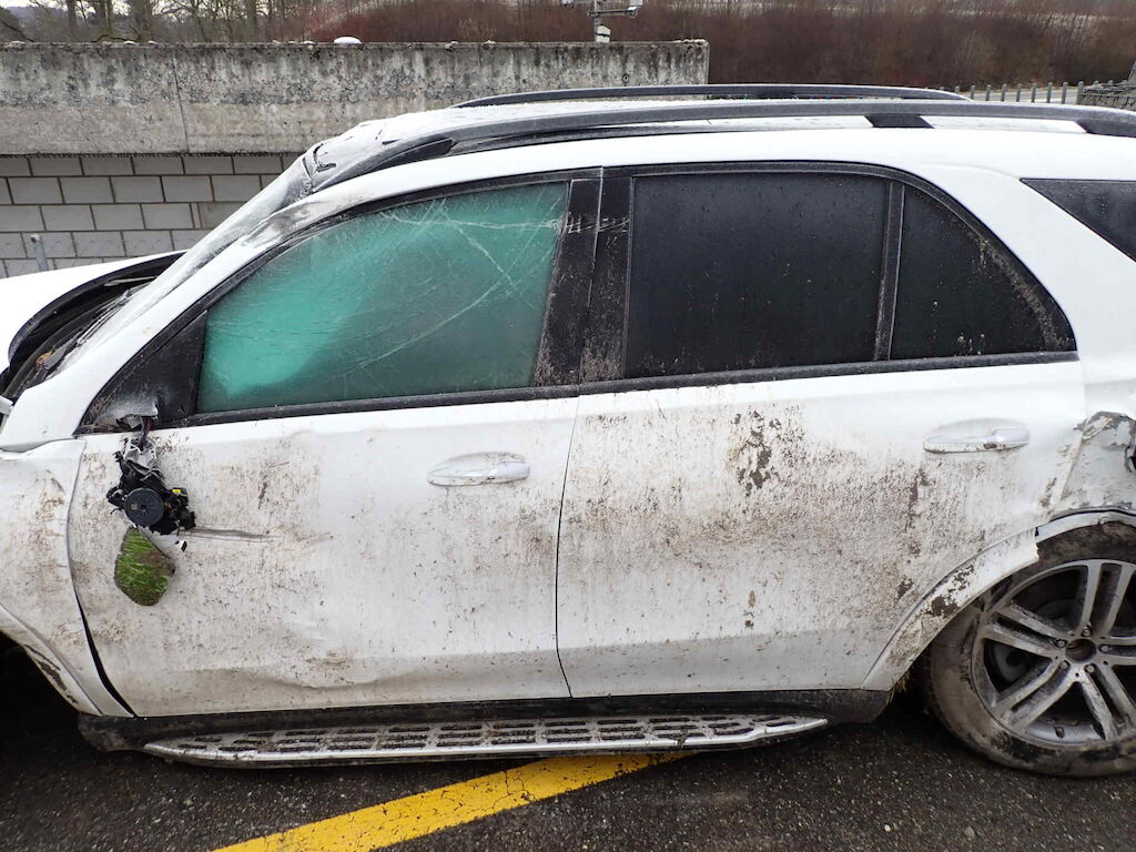 Linke Seite inkl. Dachrahmen, Frontscheibe, Dach, Front, Aufhängung vorne/hinten und Airbags beschädigtFahrzeug startet nicht!