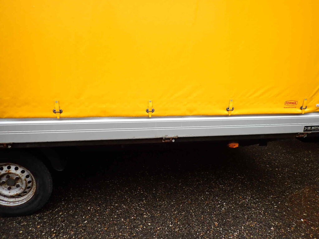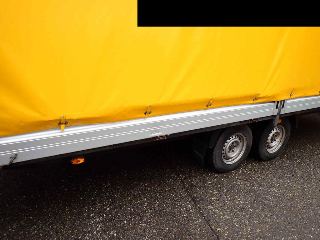 Auffahrunfall - der Anhänger war zum Unfallzeitpunkt am Zugfahrzeug befestigt.Dieser Anhänger wurde vom Hersteller Humbaur auf eine Spezialbreite und Höhe gebaut.Plache ist in einem guten Zustand - Das Firmenlogo muss entfernt werden!