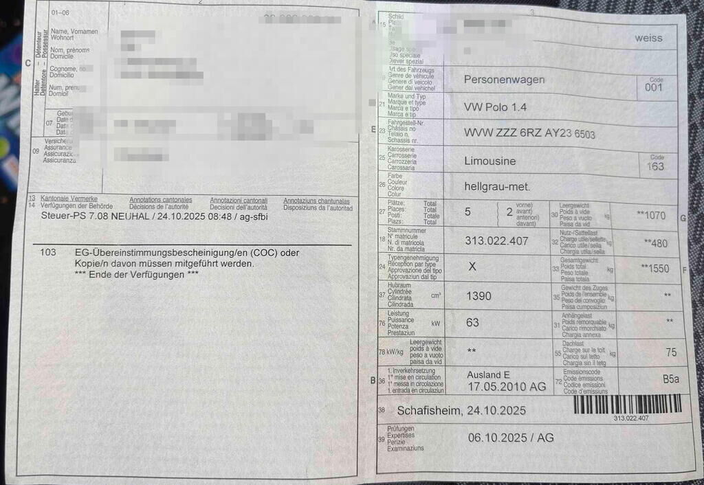 Motor startet nicht, Ursache unbekannt. Batterie leer. Unbekannte Flüssigkeit (McDonalds) ausgelaufen und verschüttet.Doppel DIN Radio knapp jährig. Gemäss Rechnungen wurden im Frühling 2025 bei einem Tachostand von 143'619 folgende Arbeiten ausgeführt: MFK, Nachschalldämpfer ers., zusätzlicher Schlüssel, Lüftungsgebläse und 2 Stellmotoren ers., Zahnriemen, Wasserpumpe, Federn vorne, Lenkgeometire.Div.Carrosserie Teile sind leicht beschädigt.Private Sachen werden demontiert.Die (vom Fahrzeugsachverständigen) berechneten/geschätzten Reparaturkosten beziehen sich auf das aktuell begutachtete Ereignis. Allfällige zusätzliche, nicht versicherte Schäden/Vorschäden, sind in den Reparaturkosten nicht enthalten. Die deklarierten Ausstattungsmerkmale können von der effektiven Ausstattung abweichen.Es wurden keine technischen Kontrollen durchgeführt.Allfällige Garantieleistungen seitens Hersteller/Importeur können mit dem Schadenereignis hinfällig sein.Der effektive km Stand kann von dem abgelesenen/angegebenen km Stand abweichen.Weitere Details des Schadens sind auf den folgenden Fotos zu entnehmen.