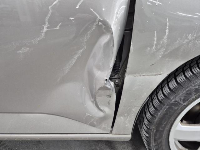 Rechte Seite beschädigt. Anstoss rechts im Bereich der A-Säule. Tür vorne rechts ist eingedrückt.