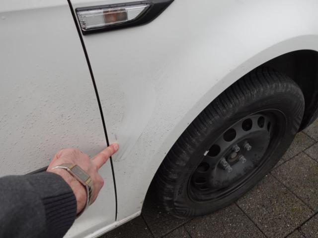 Beschädigungen an folgenden FZ-Teile: Türe vorne links verbeult, Seitenwand hinten links zerkratzt, Felge hinten rechts gestaucht, Kotflügel vorne rechts verbeult, Dachhimmel verschmutzt, Verkleidung Heckklappe beschädigt, Seitenwand hinten rechts zerkratzt