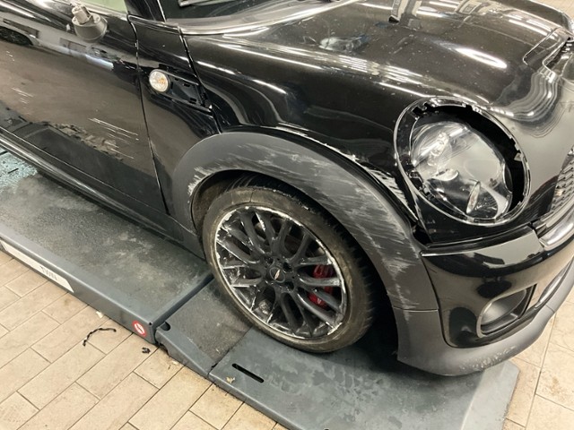 Aufhängungsteile vorne links beschädigt. Risiko Lenkung.