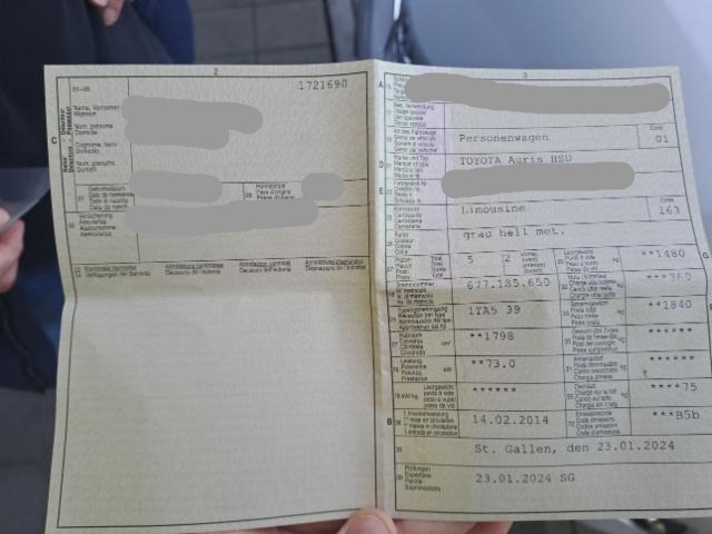 Airbag Fahrer und Beifahrerseite Elektronische Wegfahrsperre Sitzheizung vorne Elektrische Fensterheber vorne + hinten Aussenspiegel elektrisch verstellbar und heizbar Tempomat Seitenairbag Fahrer und Beifahrerseite Nebelscheinwerfer Zentralverriegelung mit Fernbedienung Lederlenkrad Mittelarmlehne hinten Innenspiegel automatisch abblendbar Lenkrad verstellbar Kopfairbag vorne und hinten Regensensor Deaktivierung Beifahrerairbag Park-Distanz-Sensor vorne + hinten Aussenspiegel elektrisch anklappbar Audiofernbedienung am Lenkrad Sitzbezüge in Teilleder Stabilitätskontrolle VSC + Traktionskontrolle TRC Leichtmetallräder 17" Zwei Zonen-Klimaautomatik Rückfahrkamera Radio/ CD/ MP3 Knieairbag Fahrer Isofix-Kindersitzbefestigung hinten Rücksitzlehnen getrennt abklappbar 60:40 Elektr. Lendenwirbelstütze Fahrersitz IPA Intelligent Parking Assist Reifendruck-Überwachungsanzeige Scheinwerfer mit automatischer Ein- Ausschaltfunktion Smart entry-start/ Schliess- Startsystem Bi-Xenon-Scheinwerfer+Waschanlage/ adaptives Kurvenlicht Anschluss USB und AUX Reifen-Reparatur Set LED Tagfahrlicht ABS und EBD Elektr. Bremskraftverteilung inkl. BA Start + Stopp Automatik Fahrer- und Beifahrersitz verstellbar Keine Gewähr auf die Angaben der Serienausstattungen Toyota Touch 2/ CD/ MP3/ Bluetooth/ DAB+