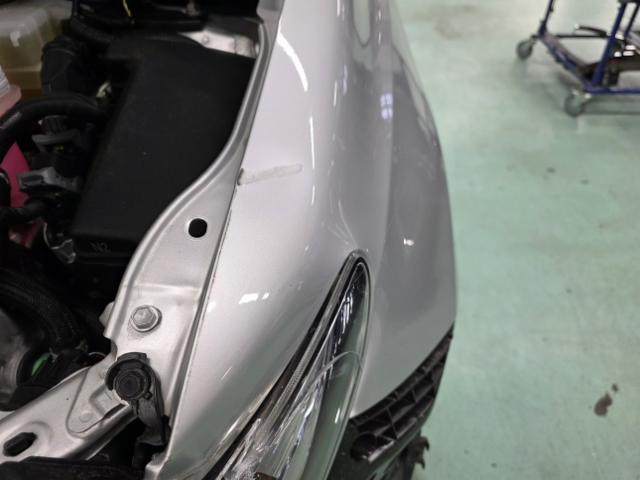 Front eingedrückt. Kotflügel vorne rechts und links eingedrückt. Motorhaube eingedrückt. Frontblech/Maskenblech eingedrückt. Radhaus vorne links eingedrückt / gestaucht. Längsträger vorne links gestaucht.
