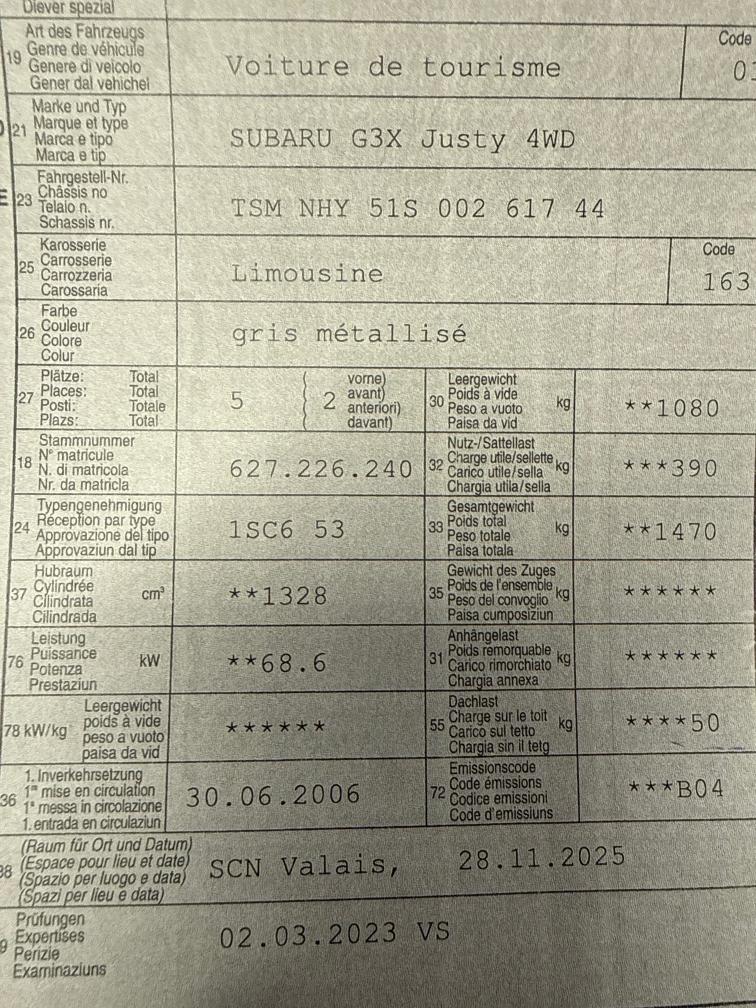 Aucun test d’atelier n’a été effectué sur le véhicule (aucune responsabilité n’est acceptée pour les défauts visibles ou non visibles). Nous ne testons ni n’inspectons toutes les caractéristiques du véhicule. Le risque incombe donc entièrement à l’acheteur. Après avoir reçu le contrat, il n’y a pas de renégociation, même si des défauts non déclarés sont révélés. Depuis le lieu sans garantie ni garantie, la conversion et la réduction sont assurées. À venir chercher dans les 5 jours ensuite des frais de 15fr par jour sont facturés.