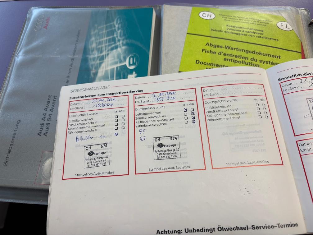 Letzter Service 09.2025 / 219'783 km Bremsen hinten sind neu Sehr gute Winterreifen Zeitweise leuchtet ABS Fehler und hat dann keine Verbindung zum ABS-Steuergerät: wahrscheinlich muss das ABS-Steuergerät ersetzt werden Zahnriemen ersetzt vor 104'000 km: Wechsel empfohlen Pedalweg der Kupplung ist lang. Das ist schon seit vielen Jahren so und gleich geblieben, Kupplung funktioniert einwandfrei Festgestellte Mängel bei Kontrolle auf Lift: Oelverlust Motor: Ventideckeldichtung l+r, Dichtungssatz für Kettenspanner Oelverlust Hinterachse: Simmerringe undicht Querlenker vorne links oben vorne hat Spiel Zustand der Carrosserie dem Alter entsprechend gut, kein Rost (siehe Fotos)