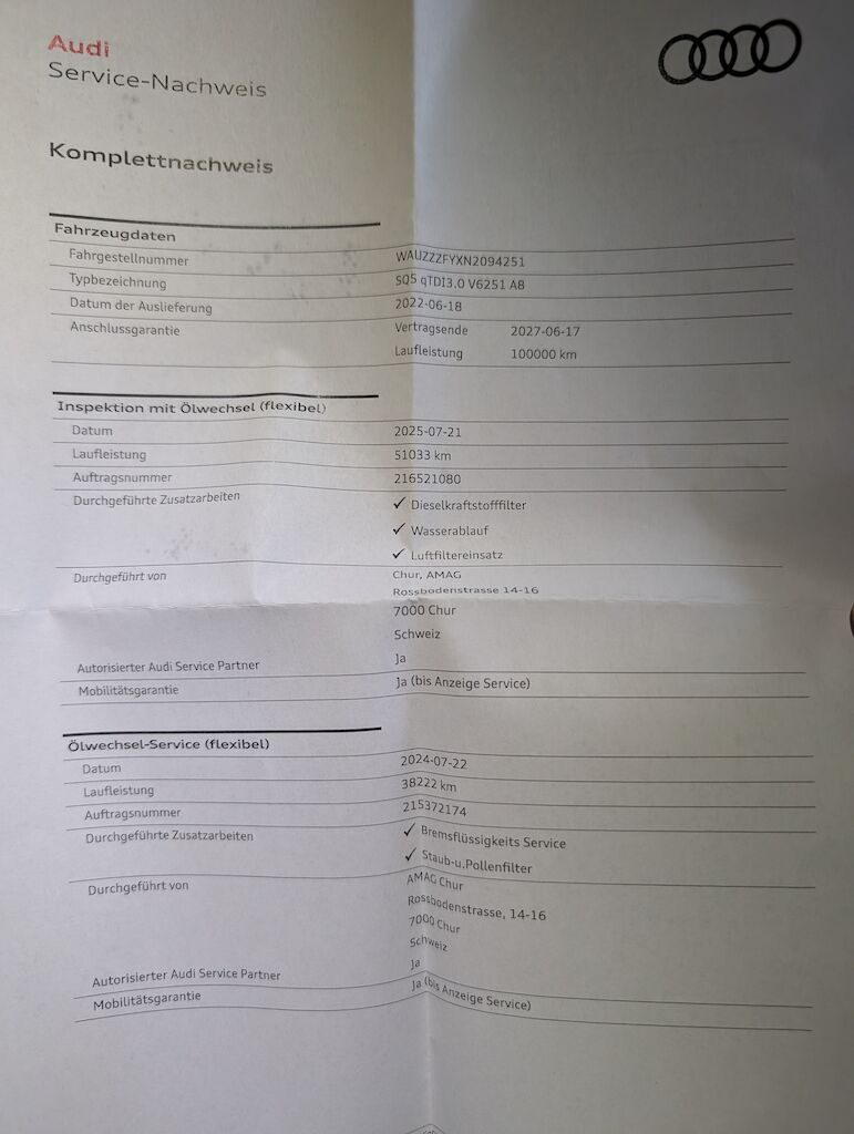 Werksgarantie bis 17.06.2027 oder 100'000 + Audi Swiss Service Packetin Kundenauftrag zu verkaufen