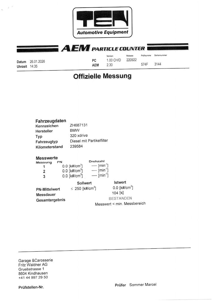 Keine Gewähr auf die Angaben der Sonder- und Serienausstattung / keine mechanische Prüfung. Fahrzeug wurde unzerlegt expertisiert / keine Haftung für allfällige, nach Demontage bekanntwerdenden Mängel. Fahrzeugbereifung und Ausstattung gemäss Fotos / Fahrzeugkauf auf eigenes Risiko ab Platz ohne Nachwährschaft.- Div. Dellen und Kratzer am gesamten Fahrzeug.- Nebellampenhalter vorne rechts def.- DPF frisch ersetzt und geprüft.- Letzter Service 2022