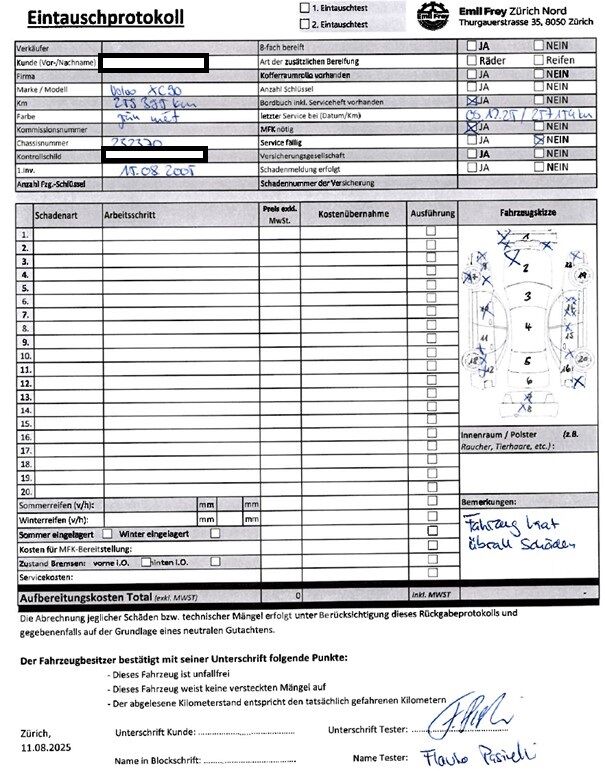 Keine Gewähr auf die Angaben der Sonder- und Serienausstattung / keine mechanische Prüfung. Fahrzeug wurde unzerlegt expertisiert / keine Haftung für allfällige, nach Demontage bekanntwerdenden Mängel. Fahrzeugbereifung und Ausstattung gemäss Fotos / Fahrzeugkauf auf eigenes Risiko ab Platz ohne Nachwährschaft. DPF/FAP Filter nicht kontrolliert.Keine technische Prüfung (Werkstatttest) vorgenommen. Fahrzeug ab Platz, ohne Garantie und Aufbereitung.- Letzter Service 09.12.2025/ 257154 Km