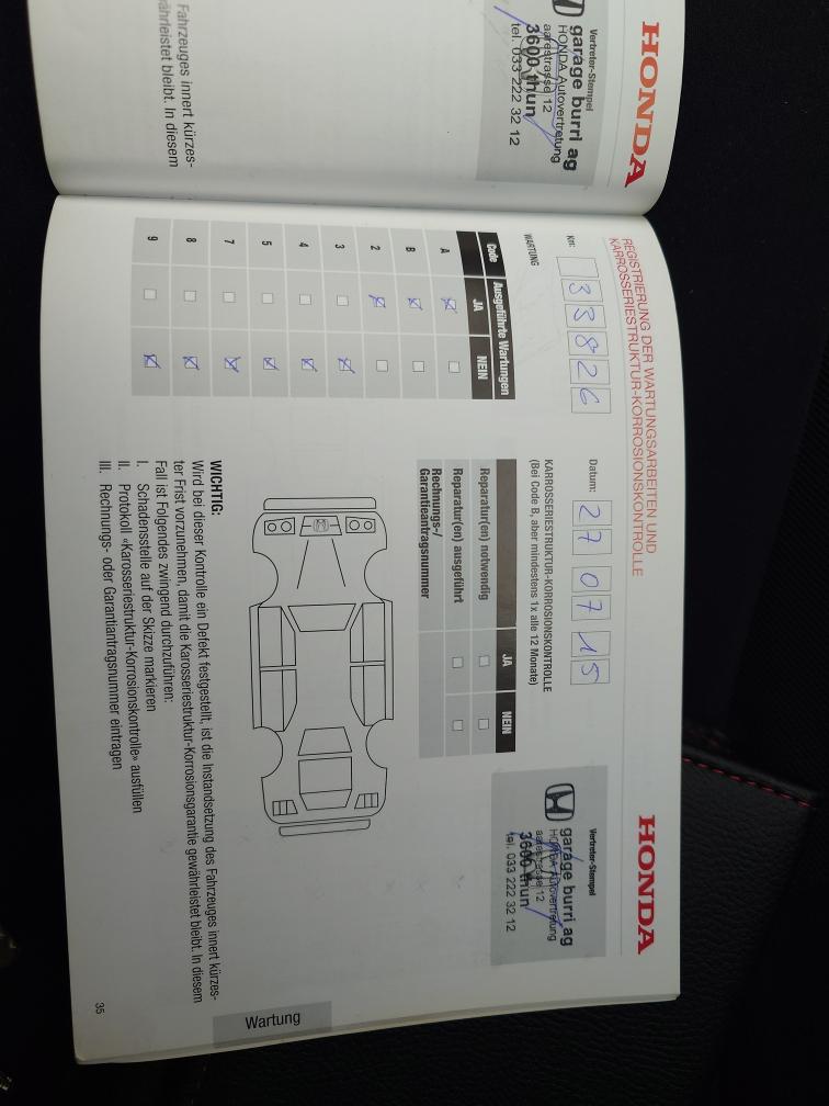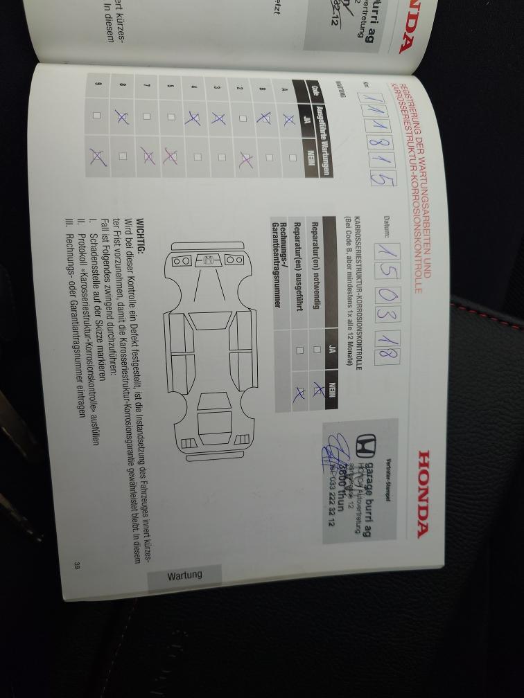 Gepflegtes 1. Hand Auto. Kein Werkstatt Test durchgeführt da erst vor 1300 Km Service durchgeführt wurde. Auto ab Platz. Keine Haftung für Mängel. Das Auto wurde nach bestem Wissen und Gewissen ausgeschrieben. Keine Nachverhandlungen. Bei Zuschlag muss das Auto innert 3 Arbeitstagen abgeholt werden, sonst wird pro Tag 30.- verrechnet!