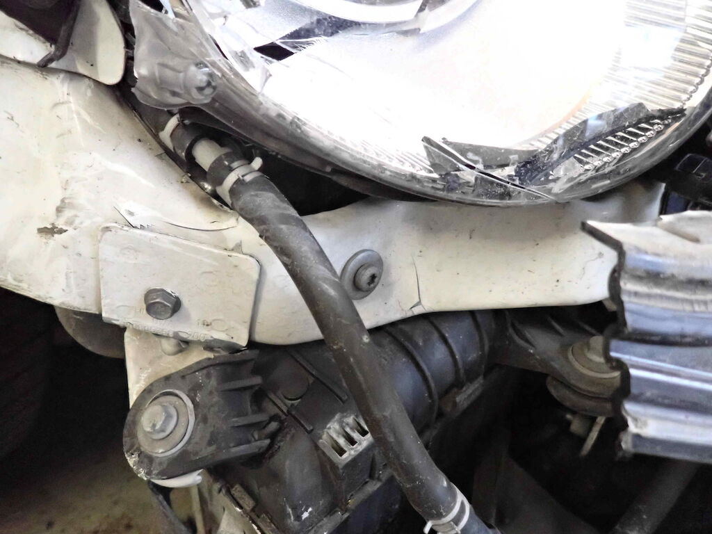 Stossfängerv vorne, Scheinwerfer rechts, Kotflügel rechts, Zusatzkühler rechts, Türe rechts, Schweller rechts, Seitenwand hinten rechts und Heckstossfänger hinten rechts eingedrückt; Felgen und Radaufhängung vorne und hinten rechts beschädigt Motor Getriebe Vorderachse Hinterachse Airbags ausgelöst: 0 unbekannt ( Abfallcode 16.01.04ak )