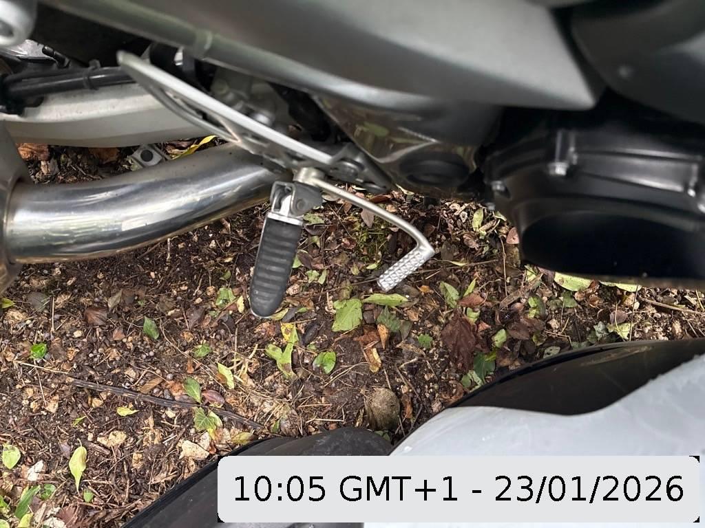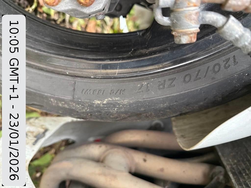 Armaturen, Aussenspiegel links, Front, Fussraster links, Gabelholm, Griff links, Kühler, Motor, Motorgehäuse, Rad vorne, Scheinwerfer, Schutzblech vorne, Sitz, Verschalungen vorne, Zündschloss
