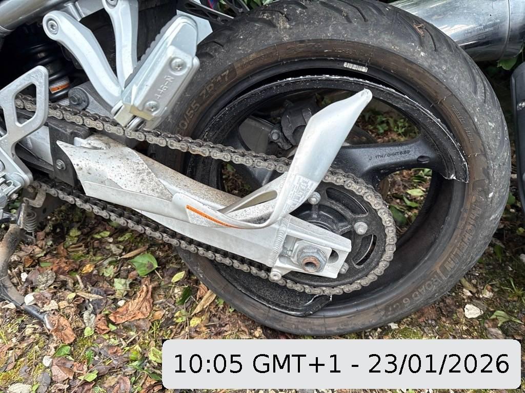 Auspuffkollektor, Auspufftopf, Aussenspiegel rechts, Front, Fussraster rechts, Griff rechts, Heckverkleidung, Lenker, Rad hinten, Rahmen, Rücklicht, Schutzblech hinten, Schwinge, Seite rechts, Tank, Verschalungen links, Verschalungen rechts, Verschalungen vorne, Windschutzscheibe