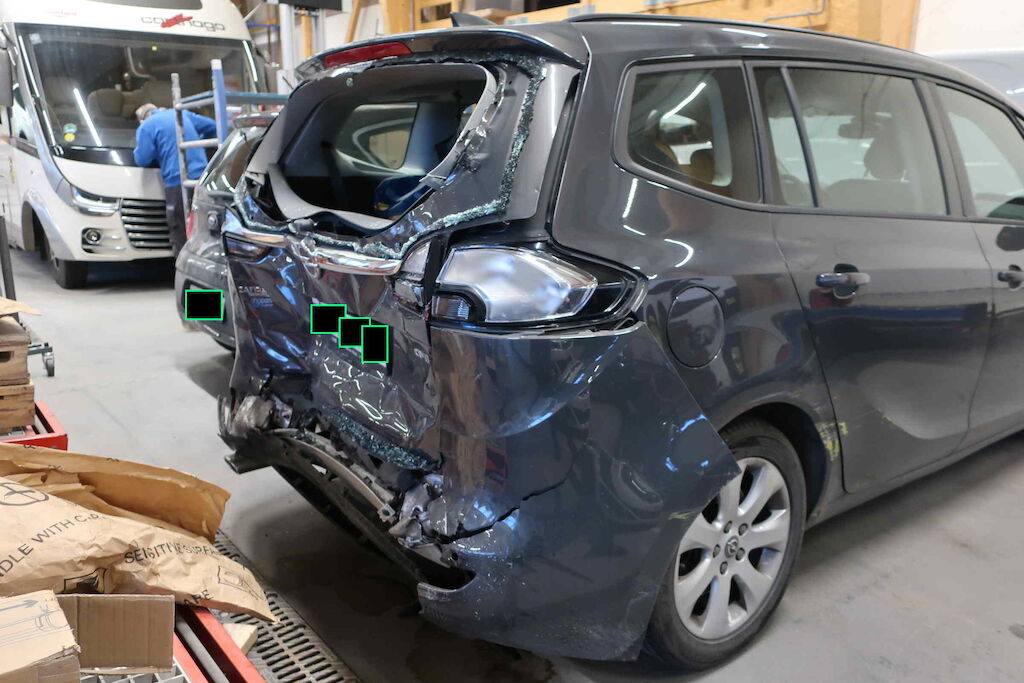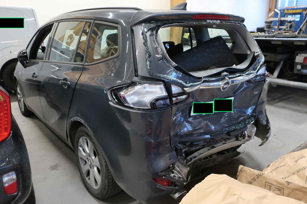 Stossfänger hi, Spoiler, Querträger, Heckdeckel, Heckblech, Kofferboden, Adbluetank beschädigt Seitenwand hi li und re deformiert und nach vorne geschoben Gurtstraffer ausgelöst Motor Getriebe Vorderachse Hinterachse Airbags ausgelöst: 0 unbekannt ( Abfallcode 16.01.04ak )