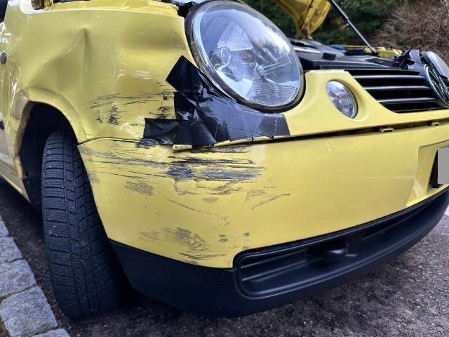 Rechte Seite beschädigt. Anstoss rechts im Bereich der A-Säule.