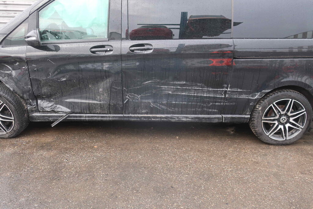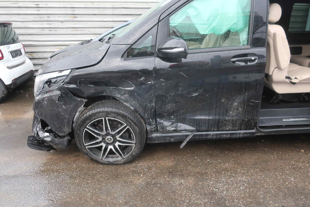 Dommage porte AVD, pare-chocs AV, phare AVG, aile AVG, roue et suspension VAG, montant AVG, porte AVG, porte coulissante G, airbags G x2, aile ARG, pare-chocs AR (liste non-exhaustive) Motor Getriebe Vorderachse Hinterachse Airbags ausgelöst: 0 unbekannt ( Abfallcode 16.01.04ak )