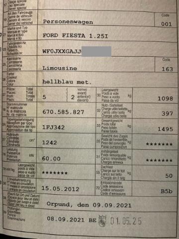 Airbag Fahrer und Beifahrerseite Elektronische Wegfahrsperre Zentralverriegelung Elektrische Fensterheber vorne ABS Antiblockiersystem Fernbedienung für Zentralverriegelung Seitenairbag Fahrer und Beifahrerseite Höhenverstellbarer Fahrersitz manuell Staub- und Pollenfilter Lenkrad verstellbar Rücksitze geteilt umklappbar 60/40 ESP/ TCS Türgriffe in Wagenfarbe Zweiter Fernbedienungsschlüssel Kindersitz-Vorbereitung Isofix Servolenkung elektrisch Aussenspiegel in Wagenfarbe elektr. verstellbar und heizbar Heckspoiler in Wagenfarbe Garantie 3 Jahre/ 100'000 km Knieairbag Fahrer Stahlfelgen 15" Ford-Easy-Fuel System/ Fehlbetankungsschutz Aussenspiegel mit integrierten Blinkleuchten Stossfänger vorne und hinten in Wagenfarbe Reifen-Reparatur Set Keine Gewähr auf die Angaben der Serienausstattungen