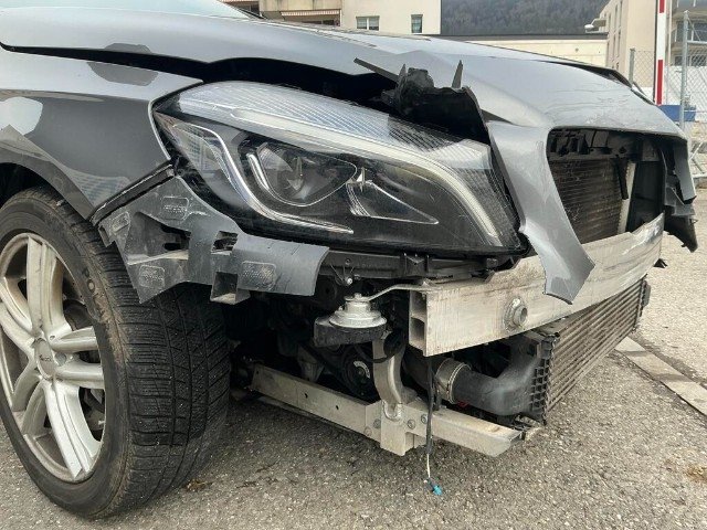 Stossstange, Gitter, Kühlergrill, Scheinwerfer, Querträger, Führungen, Halterungen, Fussgängerschutz-Sensor, Motorhaube, Kotflügel, Kühler und Kondensator sind beschädigt.