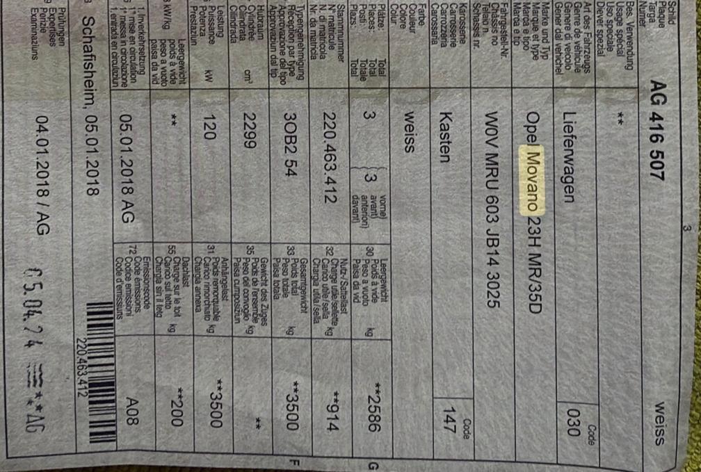 Sehr schöne Movano mit Doppelräder und 3‘500 kg Anhängerkupplung Ab Service Inneneinrichtung hat über 8‘000.- CHF gekostet Fahrer Sitz ist beschädigt aber mit Sitzüberzug nicht sichtbar. Seitenwand hat eine Beule (wie auf Foto) Am Fahrzeug wurde kein Werkstatttest gemacht (Für sichtbare oder nicht sichtbare Mängel wird nicht gehaftet). Wir testen & kontrollieren nicht alle Funktionen des Fahrzeugs. Das Risiko liegt somit vollumfänglich beim Käufer. Ab Platz ohne Garantie, Wandelung und Minderung werden wegbedungen