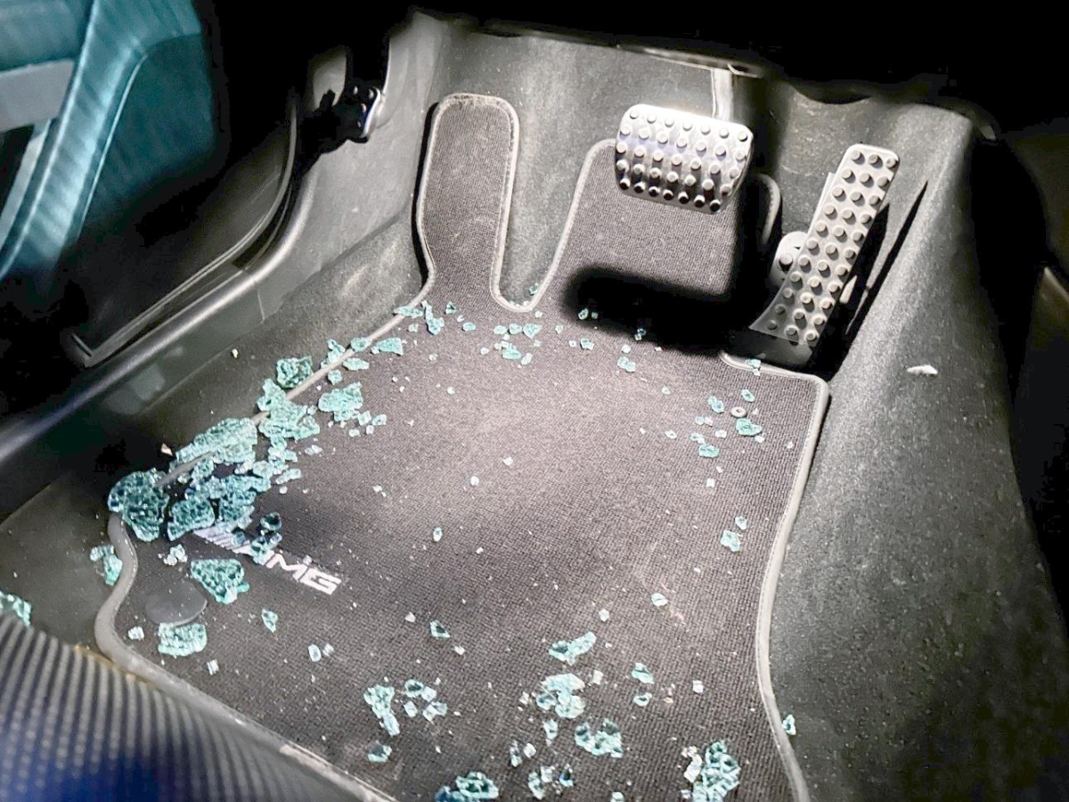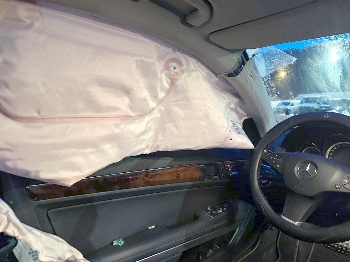 Airbag ausgelöst, B-Säule, Gurtstraffer ausgelöst, Kotflügel links, Schweller links, Seitenwand links, Stossstange hinten, Türe vorne links