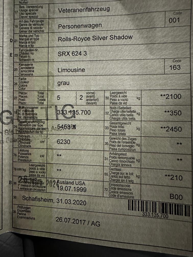 sehr schöner Rolls Royce - läuft einwandfrei - 46000km es wurde kein Werkstattest gemacht - Mindestpreis 8000.- / Veteraneneintrag