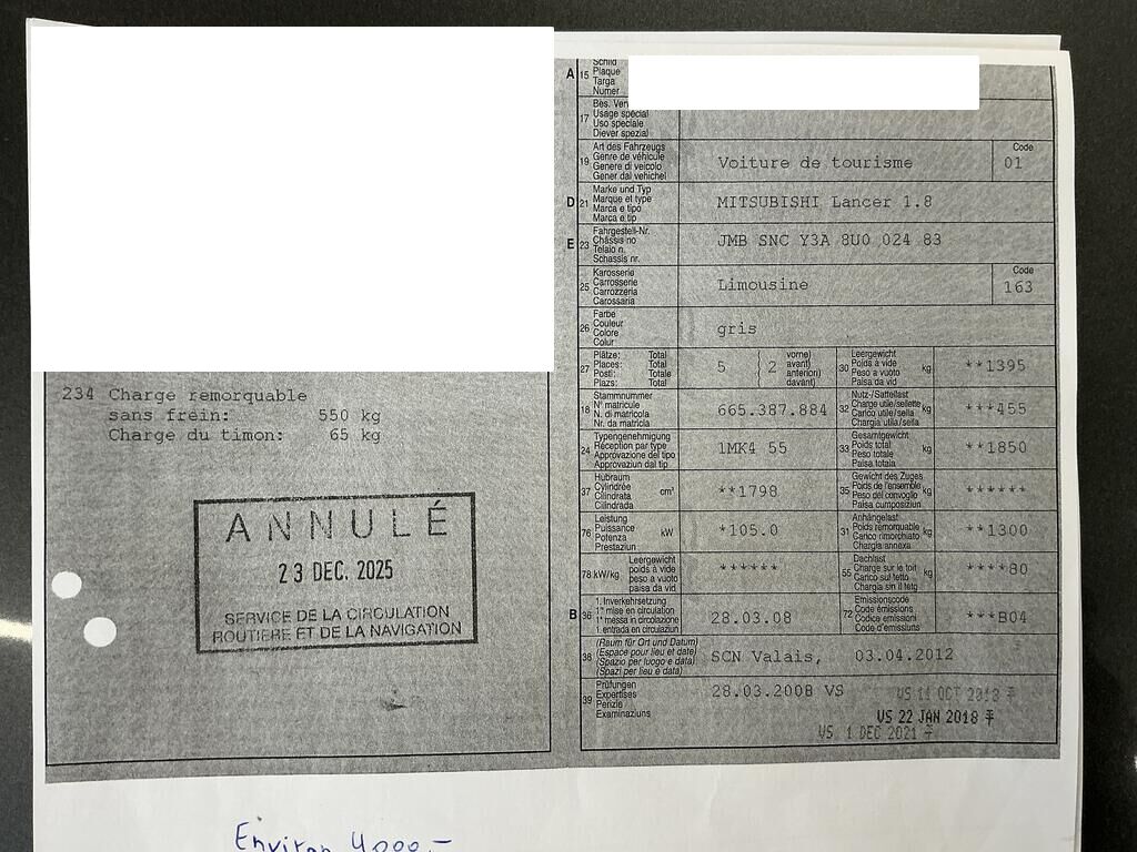 Porte avant et arrière droite , aile arrière droite, bas de caisse droit enfoncé. Cache bas de caisse droit griffé. Dommage préexistant: pare-chocs arrière griffé, peinture coffre arrière ternie, aile arrière gauche enfoncée. Motor Getriebe Vorderachse Hinterachse Airbags ausgelöst: 0 unbekannt ( Abfallcode 16.01.04ak )