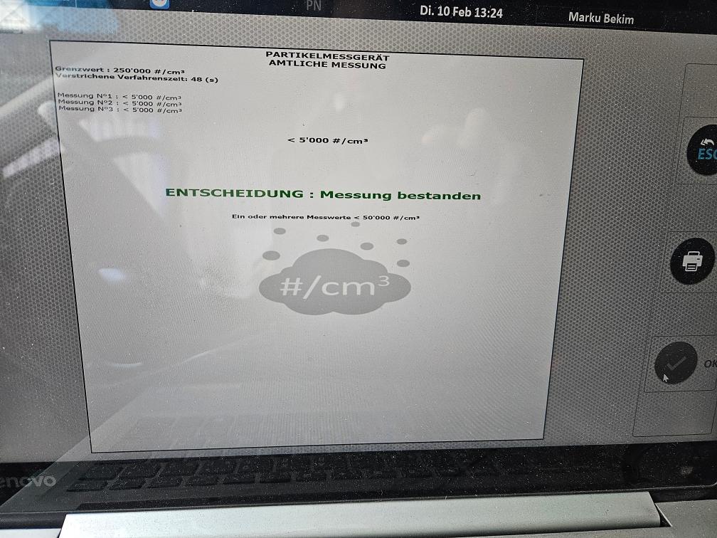 Dieselpartikelfiltertest wurde erfolgreich durchgeführt (Schriftlicher Ausdruck ist vorhanden).
