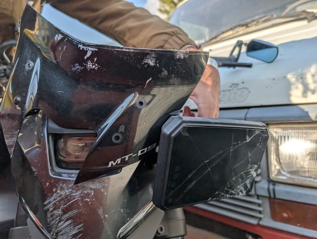 Flanc droit. gauche et dessus de la moto endommagée Motor Getriebe Vorderachse Hinterachse Airbags ausgelöst: 0 unbekannt ( Abfallcode 16.01.04ak )