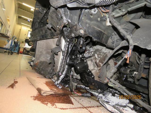 Motor ist abgerissen. Risiko Getriebe. Alle Kühler vorne sind eingedrückt.