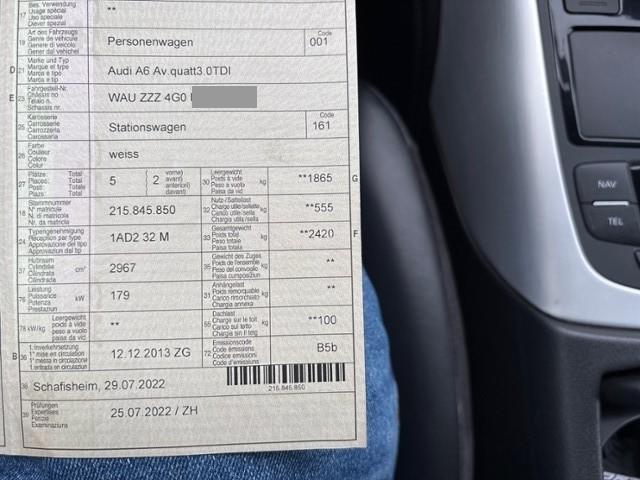 Sitzheizung für Vordersitze Lendenwirbelstützen elektr. für Vordersitze Durchladesystem inkl. Skisack Mittelarmlehne vorne Fahrer-Informationssystem FIS Tempostat Airbag Fahrer und Beifahrerseite Seitenairbag Fahrer und Beifahrerseite Elektronische Wegfahrsperre Servotronic Lenksäule mit Höhen- und Längseinstellung Seitliches Kopfairbagsystem SIDEGUARD Elektrische Fensterheber vorne + hinten Multifunktions-Lenkrad 4-Speichen Dachreling blank Reifendruck-Kontrollsystem RDK Scheinwerfer Reinigungsanlage ABS und EBV Elektr. Bremskraftverteilung Bremsassistent EBA ESP Elektronisches Stabilitätsprogramm ASR und EDS Antriebsschlupfregelung und Differrentialsperre Dieselpartikelfilter DPF Rücksitzlehne geteilt 1/3 oder 2/3 / umklappbar Automatisch abblendbarer Innenspiegel Grösserer Kraftstofftank Elektromechanische Parkbremse Klimaautomat Vier-Zonen Ablagepaket Tire mobility system Endrohrblende Licht- und Regensensor Xenon-Plus Scheinwerfer inkl. LED Tagfahrlicht Audi Sound System MMI Radio plus Audi hold assist Bluetooth Schnittstelle Ambientebeleuchtung Audi pre sense basic Audi Parking System plus Stop + Start System Dekoreinlagen in Micrometallic platin Sitzbezüge in Stoff Effekt Leichtmetallräder 17" 6-Arm Design Komfortschlüssel/ Gepäckraumentriegelung Keine Gewähr auf die Angaben der Serienausstattungen