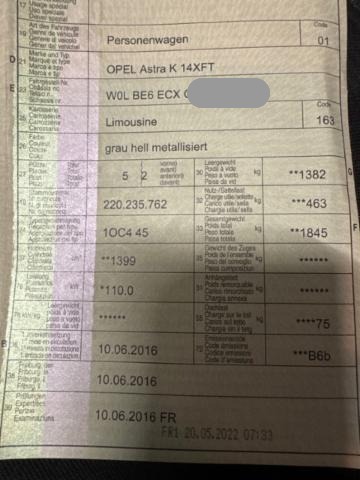 Fahrzeugdokumente vorhanden.