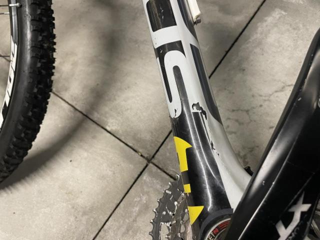 Vorderrad beschädigt. Gabel beschädigt. Lenker verbogen.