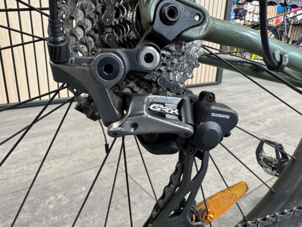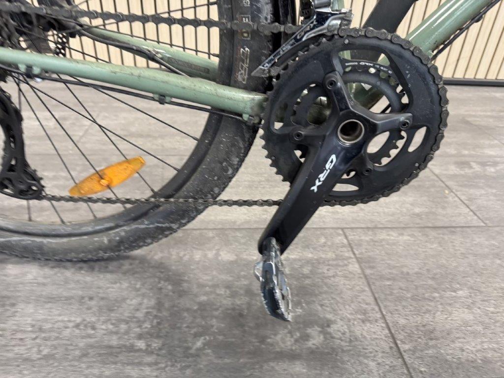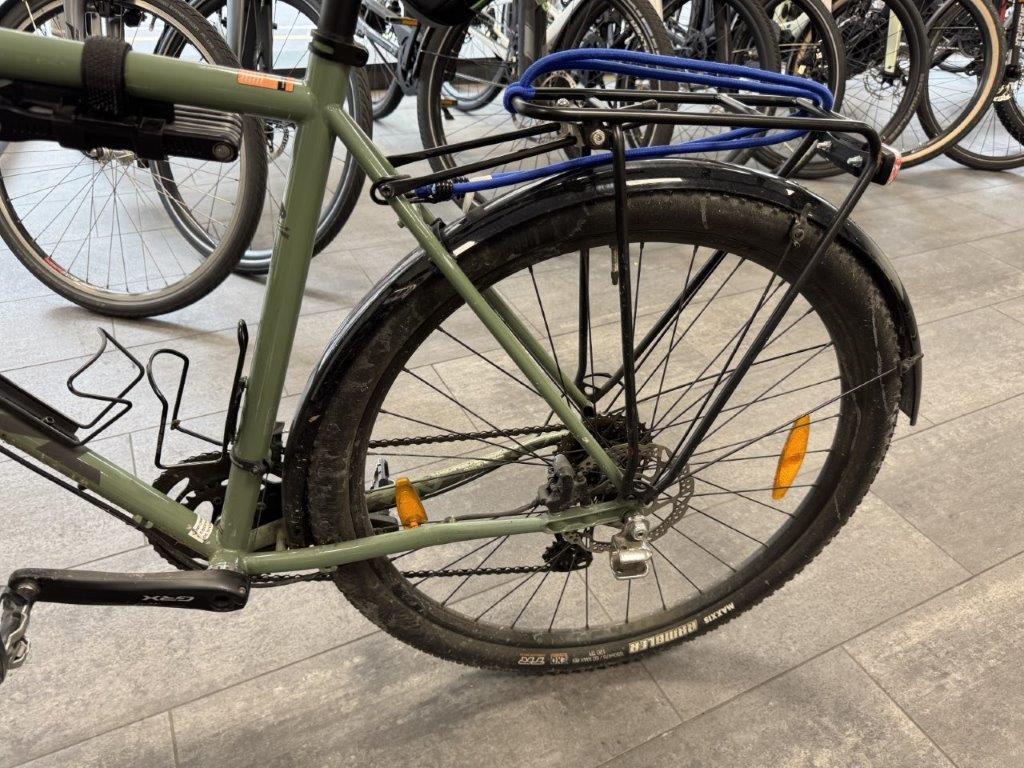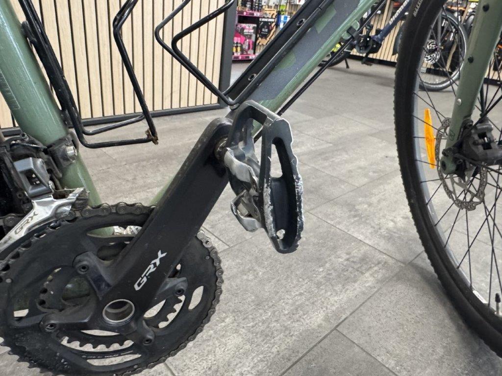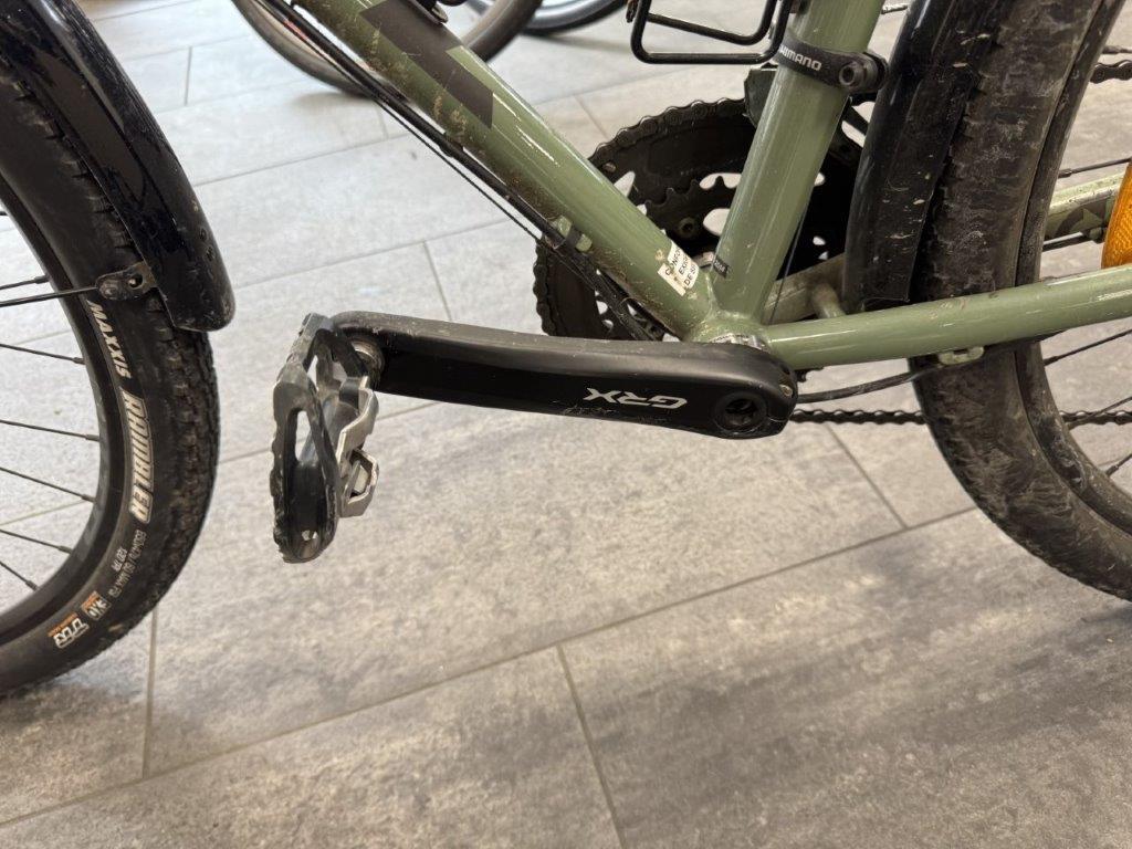 Rahmen vorne zerkratzt. Lenker verbogen. Brems- und Schalthebel zerkratzt und verbogen. Rahmen hinten verbogen. Laufräder verbogen. Pedale verbogen und zerkratzt. Gepäckträger verbogen. Schaltwerk zerkratzt und verbogen. Diverse Teile leicht beschädigt.