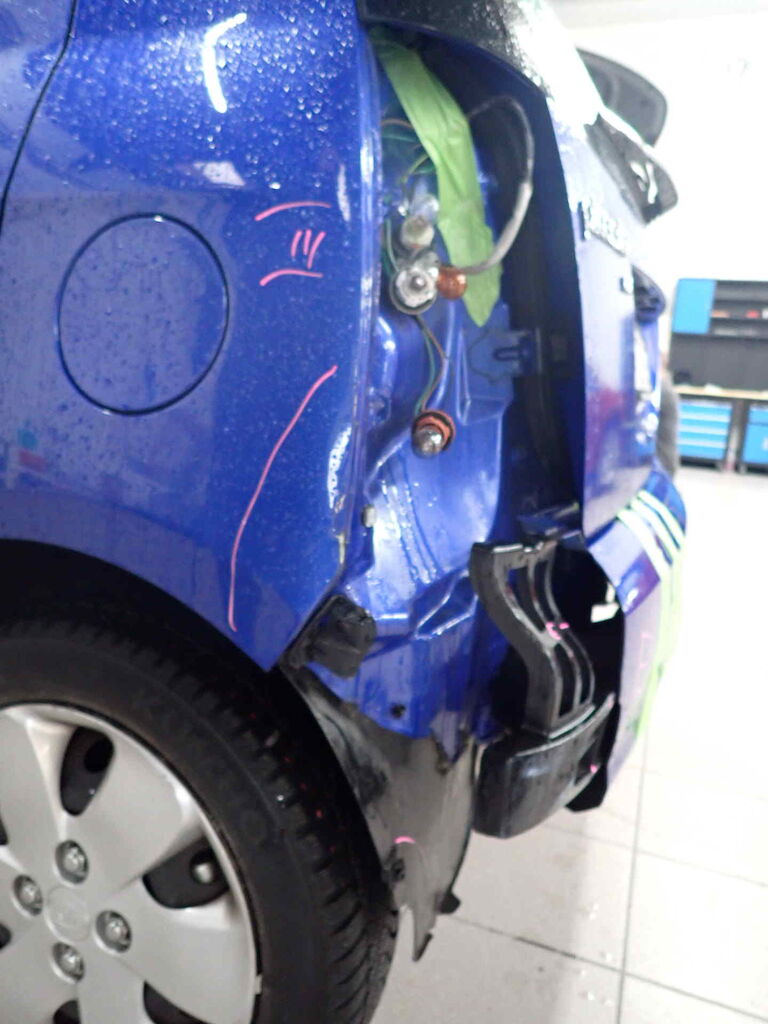 Anprall Ecke L, dabei wurde die Stossstange beschädigt, die Rückleuchte sowie die Seitenwand HL Motor Getriebe Vorderachse Hinterachse Airbags ausgelöst: 0 unbekannt ( Abfallcode 16.01.04ak )