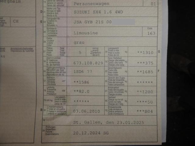 Suzuki SX4 (RW/EY)(2006->) 4WD