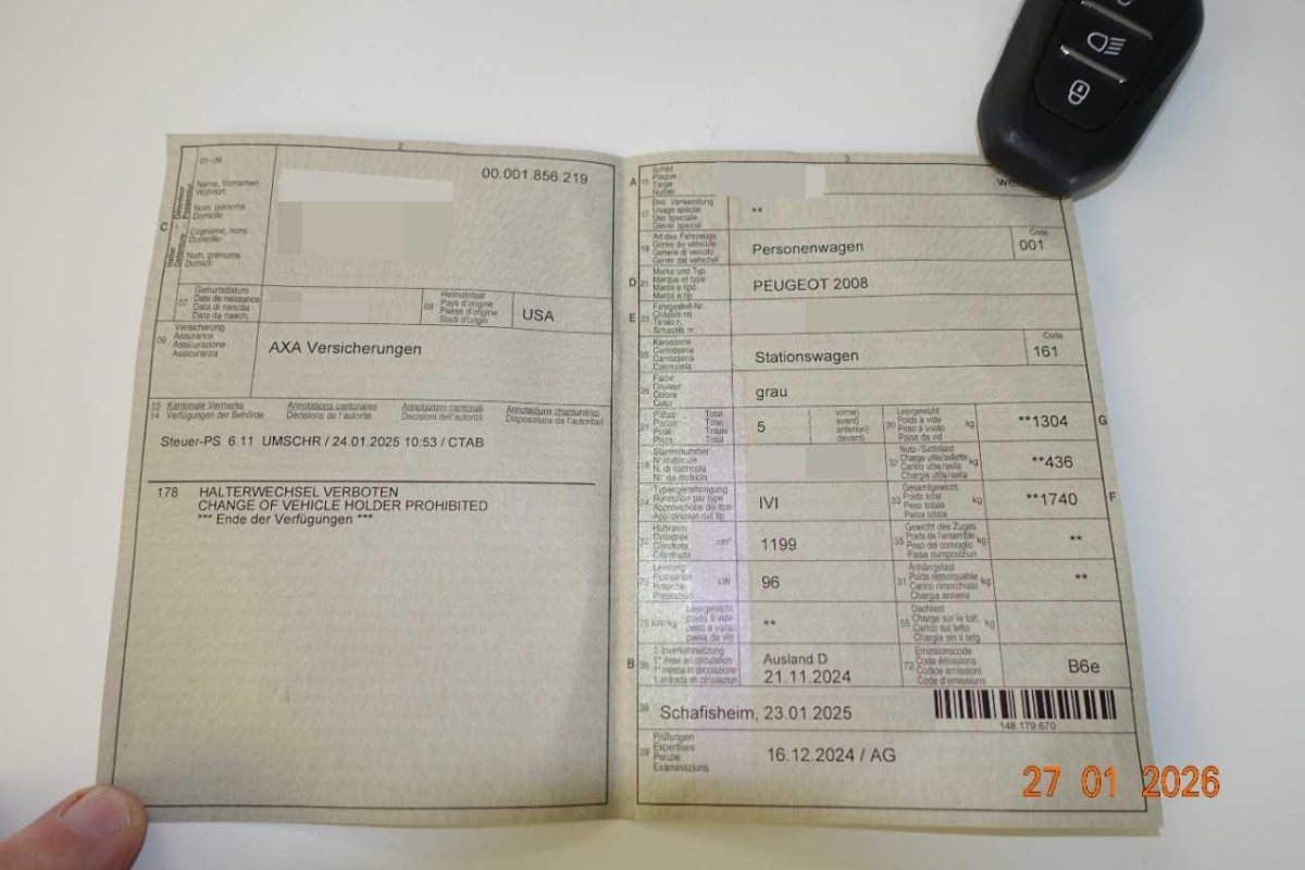 ISOFIX- und Top-Tether-Befestigungen an den hinteren Seitenplatzen, Modularer Kofferraumboden 2 Positionen, Elektrische Fensterheber vorne und hinten, sequenziell und mit Einklemmschutz, Lenkrad: Kompaktlederlenkrad mit integrierten Bedienelementen, Räder: Reifenpannenset 12-V-Kompressor mit Patrone fur Verstopfungsschutzmittel, 3-Tasten-Fernbedienung + Standardschlüssel, Türarmlehnen vorne und hinten in Stoff/Kunstleder Isabella mit Quarznaht, Kühlergrill High-End-Kühlergrill in Schwarz mit vertikalen Markierungen in Wagenfarbe, Lamellen in Dark Chrome, Wegfahrsperre elektronisch, Vordere Türverkleidungen mit Carbone-Dekor und Zierleiste Schwarz glänzend mit Tampondruck in Grün Calcite, Zierleiste unterhalb der Heckfenster in Schwarz, Garantie: 12 Jahre Korrosionsschutzgarantie, Mattschwarze Zierleisten an den Seitenfenstern, Türverkleidungen vorne mit Carbone-Dekor und Zierleiste schwarz glänzend mit Quarz Tampondruck, Media: 6 Lautsprecher (2 tweeters und 2 woofers vorne u. 2 hinten), Dachreling in glänzendem Schwarz, Räder: Reifendruck-Kontrollanzeige, Fahrwerk: Fahrmodus-Schalter Normal/Eco/Sport, Innenraum und Dachhimmel Schwarz, Sitze: Beifahrersitz höhenverstellbar, Aussenspiegel in Schwarz glänzend, Klima: Automatische Einzonen-Klimaanlage, Lackierung: Metallic-Lackierung ( Grau Selenium ), Garantie: 3 Jahre / 100 000 km Garantie auf Teile, Arbeit und Peugeot Assistenz (je nachdem, welche Bedingung zuerst eintritt), Armaturenbrett aus Schaumstoff mit Carbone-Dekor und Zierleiste Schwarz glänzend mit Chromleiste, Katana Mattschwarz, Sitze: Im Verhältnis 1/3 zu 2/3 umklappbare Rücksitzbank, Licht: Drittes Bremslicht, Drehzahlmesser, Paket: Paket Safety, 4 Haltegriffe (2 vorne und 2 hinten), Assist: Einparkhilfe hinten, akustisch und visuell, Verchromte doppelte Auspuffkanüle, Seitenscheiben hinten und Heckscheibe stärker getönt, Sitze: Fahrersitz mit manueller höhenverstellbar, Assist: Einparkhilfe vorn (visuell und akustisch), Abschaltbares ESP (Elektronisches Stabilitatsprogramm) mit Berganfahrhilfe und indirekter Reifenunterdruckerkennung, Media: PEUGEOT i-Connect - DAB-Radio rnit personalisierbarern - 10-Zoll-HD-Farbtouchscreen Bluetooth - kabelloser Mirror Screen (Apple CarPlay / Android Auto) - Wifi 1 USB-Anschluss Typ C (Daten+Aufladung) - 1 USB-Anschluss Typ C Steckdose (Aufladung) an der Vorderkonsole, Bordcomputer, Peugeot i-Cockpit mit digitalem 10-Zoll-Head-up-Kombiinstrument, Beheizbare Aussenspiegel, elektrisch einstell- und anklappbar, 3-Punkt-Sicherheitsgurte auf allen Plätzen, Höhenverstellbare Kopfstützen mit optimierter Sicherheit Fahrer, Beifahrer und hinten (x3), Räder: 17-Zoll-Alufelgen 'Karakoy', glanzgedreht Zweifarbig Schwarz Orbital, rnit Glanzlack, Akustische Windschutzscheibe, Seitliche Türschutzleisten Schwarz genarbt, Licht: 3-Krallen-LED-Rückleuchten, Innenbeleuchtung A-DOME 3-LED-Deckenleuchte vorne (1 Lampe, 2 Leseleuchten) 2 LED-Leseleuchten hinten i-DOME, Tiefe Konsole mit mechanischer Feststellbremse, Garantie: 3 Jahre Lackgarantie, Türgriffe in Wagenfarbe, Paket: Sicht-Paket, Peugeot Connect SOS & Assistenz Automatischer oder manueller Notruf per SOS-Push und direkte Verbindung mit der PEUGEOT Assistance-Plattform (24 Stunden am Tag, 7 Tage die Woche), Airbag: 6 Airbags (adaptive Frontairbags, Seitenairbags vorne, Vorhangairbags vorne und hinten), Polster: Stoff CASUAL LOMSA gepragt, Kuntslederbegleitung Isabella, Tri Material LOMSA mit Ziernahten Quartz, Servolenkung, Licht: Scheinwerfer Peugeot LED Technology mit 3-Krallen-LED-Tagfahrlicht, Heckscheibenwischer, Kofferraumschutzleiste Grau Meteor, Licht: Nebelschlussleuchte, Media: 1 USB-C-Steckdose (Aufladung) und 1 USB-C-Steckdose (Aufladung) fur die Fondpassagiere,, Türverkleidung hinten mit Karsten-Maserung, Zentralverriegelung, Getriebe: 8-Stufen-Automat sequentiell, Dachkantenspoiler in der Wagenfarbe, Heckscheibenheizung, Katalysator geregelt, Innenspiegel automatisch abblendbar, Antiblockiersystem (ABS)