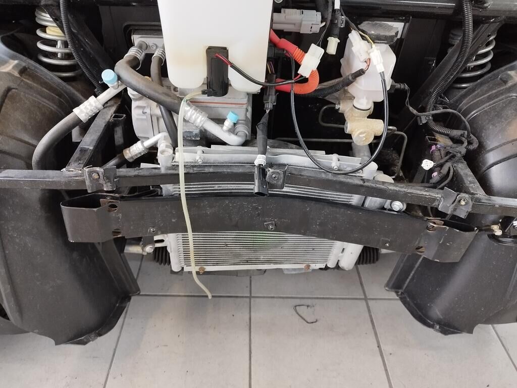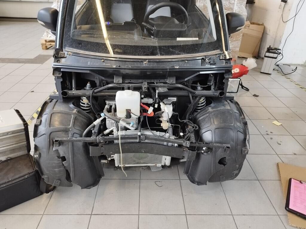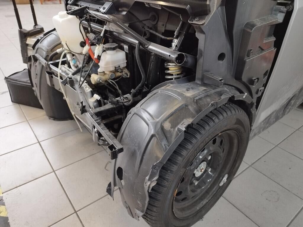 Die Frontverkleidung vorne ist gerissen, beide Scheinwerfer sind gerissen, beide Radhausschalen sind gerissen, der Frontträger ist deformiert, der Klimakühler ist deformiert, der Rahmen ist deformiert. Weitere Details zum Schadenfall gehen aus den beiliegenden Fotos hervor. Motor Getriebe Vorderachse Hinterachse Airbags ausgelöst: 0 unbekannt ( Abfallcode 16.01.04ak )