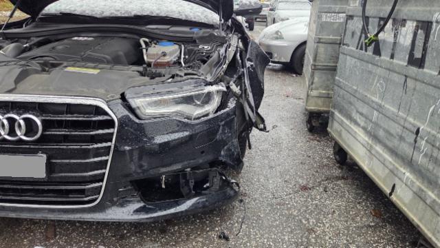 Linke Seite beschädigt. Anstoss links im Bereich der A-Säule. Schweller links ist eingedrückt. Tür vorne links ist eingedrückt.