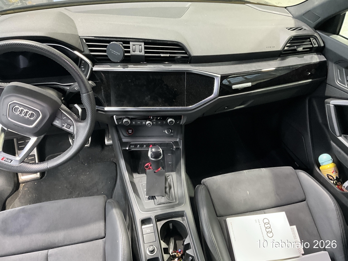 Drehzahlmesser, Räder: Reifenreparatur-Set (Tire Fit), Räder: Reifendruck-Kontrollanzeige, Dekor: Aluminiumoptik im Interieur, Airbag: Seitenairbags vorne, Heckscheibenheizung, Scheinwerfer-Waschanlage, Räder: Leichtmetallräder 20 Zoll - 10-Speichen-Stern - Grösse 8,5 J × 20 mit Reifen 255/40 R 20, Audi connect Notruf, Gepäckraumklappe elektrisch öffnend und schliessend, Polster: Interieurelemente in Alcantara schwarz, Innenspiegel abblendbar, Elektronische Parkbremse, USB-Anschluss, Servolenkung, Licht: Nebelschlussleuchte, Heckspoiler in Wagenfarbe, Kindersitzbefestigung ISOFIX für den Beifahrersitz, Dekor: Dekoreinlagen Aluminium Race anthrazit, Katalysator geregelt, Veloursfussmatten vorne und hinten, Garantie: 2 Jahre ohne Kilometerbegrenzung (ab 1. Inv.), Stopp-/Start-System, Spurverlassenswarnung und Spurwechselwarnung, Airbag: Window-Kopfairbags, Wegfahrsperre elektronisch, Audi pre sense front, Pedale und Fuss-Stütze in Aluminium, Elektrische Kindersicherung, Aussenspiegel rechts und links beheizt, elektrisch verstell- / und einklappbar, Audi drive select, Fahrwerk: RS-Sportfahrwerk, Progressivlenkung, Dekor: Akzentfläche in der Armaturentafel in Glasoptik schwarz, Aussenspiegel in schwarz, Mittelarmlehne vorne, Dekor: Interieurelemente in Microfaser dinamica schwarz, RS-Bremsanlage, Assist: Berganfahrassistent, Lackierung: Uni-Lackierung, Bordcomputer, Elektronisches Stabilitäts-Programm (ESP), Sitze: 4-Wege-Lendenwirbelstütze für die Vordersitze, Gurtkontrolle, Getriebe: 7-Gang- Automat S tronic, Media: MMI Radio plus, Licht: Drittes Bremslicht, Sitze: Vordersitze manuell verstellbar, Licht: Licht- und Regensensor, Heckscheibe, hintere Tür- und Seitenscheiben in Klarglas, Ladekantenschutz in Edelstahl, Kopfstützen hinten, Airbag: Airbag Beifahrer deaktivierbar, Licht: LED Scheinwerfer, Klima: Klimaanlage, Licht: LED-Heckleuchten mit dynamischem Blinklicht, Dachhimmel schwarz, Nichtraucherausführung, Frontscheibe in Akustikverglasung, Zentralverriegelung mit Fernbedienung, Assist: Müdigkeitserkennung, Paket: Ambiente Lichtpaket, Audi virtual cockpit, Sitze: Sportsitze vorne, Einstiegsleisten mit Aluminiumeinlage und beleuchtetem RS Q3-Schriftzug vorn, Heckscheiben-Wisch-/Waschanlage, Lenkrad: RS-Sportkontur-Lederlenkrad im 3-Speichen-Design - mit Multifunktion plus und Schaltwippen, unten abgeflacht, Kindersitzbefestigung ISOFIX und Top Tether für die Rücksitzbank, ABS, EBD elektronische Bremskraftverteilung, Media: Bluetooth-Schnittstelle, Kühlergrilleinfassungen, Verbandmaterial und Warndreieck, Paket: Optikpaket schwarz glänzend (Dachreling in schwarz matt/ Optikpaket schwarz / Frontspoiler), Airbag: Airbag Fahrer und Beifahrer, 3-Punkt-Sicherheitsgurte auf allen Plätzen, Media: Audi Sound System, Sitze: Rücksitzbank plus mit Mittelarmlehne und Cupholder, Bordwerkzeug, Media: Digitaler Radioempfang (DAB), Kopfstützen vorne höhenverstellbar, Geschwindigkeitsbegrenzer