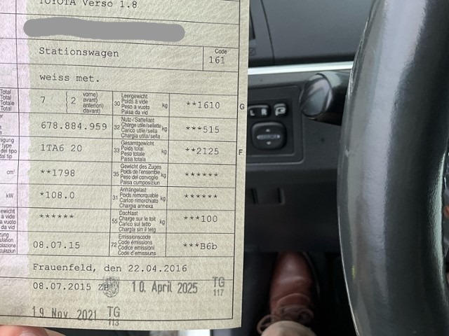 Fahrzeugdokumente vorhanden.