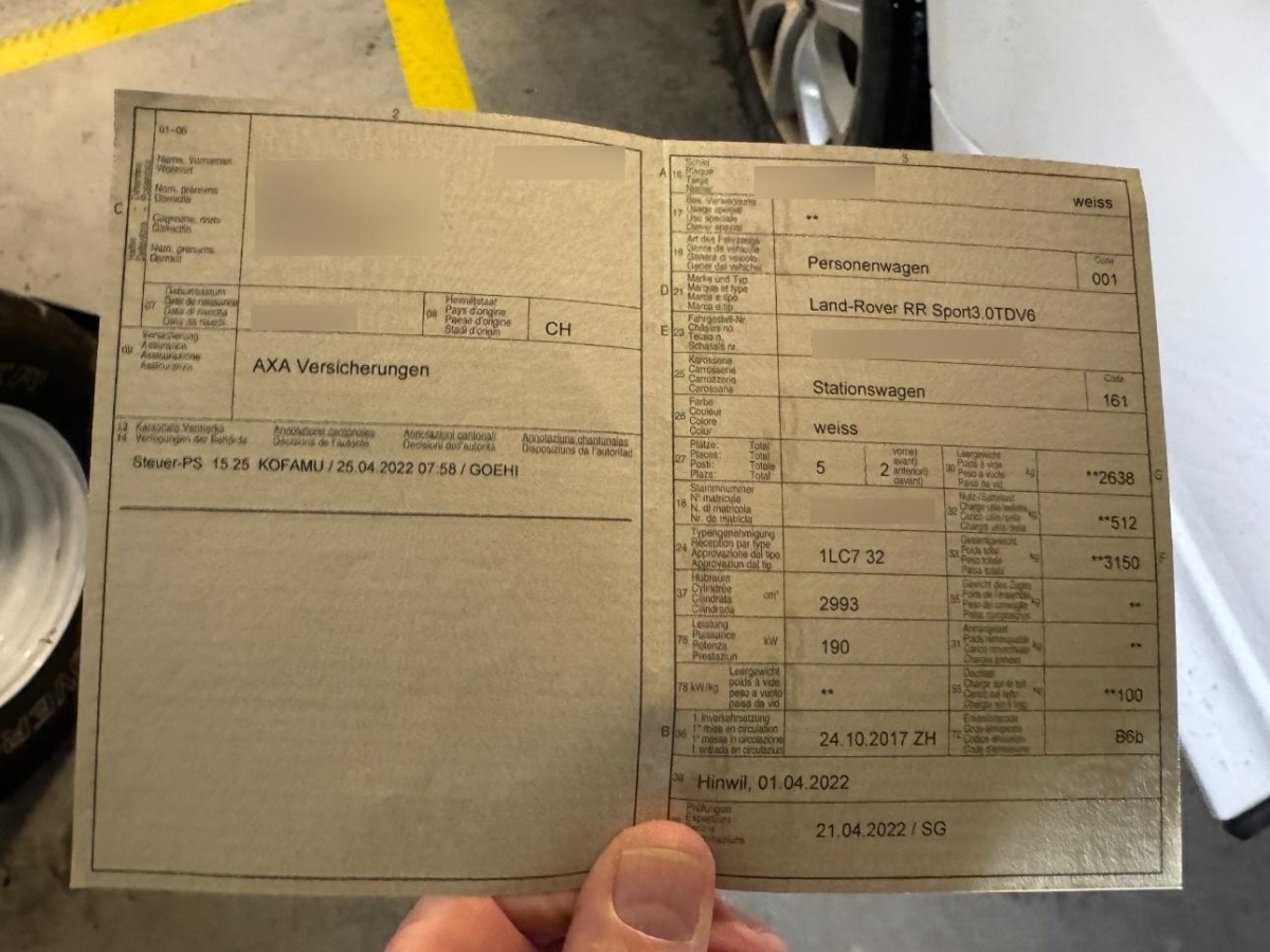 Sitze: Rücksitzlehne geteilt abklappbar, Stopp-/Start-System, Bluetooth-Schnittstelle, Media: Touchscreen, Ledersitze perforiert, Assist: Bergabfahrhilfe (Hill Descent Control, HDC), Anhänger-Stabilitätsprogramm, Bremsanlage, ohne Logo, Licht: Drittes Bremslicht, Schalldämmende Verbundverglasung, Elektronische Traktionskontrolle (ASR/TCS), Getriebe: 8-Stufen-Automat sequentiell, Blinker in Aussenspiegel, Park Distance Control vorne, Wegfahrsperre elektronisch, Auspuffanlage mit 2 Endrohren, Ablagebox auf Armlehne befestigt, Elektrische Kindersicherung, Frontscheibenheizung, Regensensor für Scheibenwischer vorne, Elektrische Fensterheber, Elektronisch geregelte Luftfederung, Armlehne vorne mit Ablagefach, Fahrwerk: Terrain Response, Assist: Warnblinkautomatik bei Vollbremsung, Servolenkung geschwindigkeitsabhängig, Elektrische Heckklappe, AUX-Anschluss, Laderaumabdeckung, Aluminium-Applikationen, Einparkhilfe hinten, Vorbereitung für Dachträger, Tempomat mit Geschwindigkeitsbegrenzer, Getönte Scheiben, Abschliessbare Radschrauben, Allradantrieb permanent, Notrad, Media: Sprachsteuerung, Dynamische Stabilitätskontrolle (DSC), Räder: TPMS Reifendrucküberwachungssystem, Zusätzliche 12V Steckdosen, Antiblockiersystem (ABS), Zentralverriegelung mit Fernbedienung, Tagfahrlicht, Höhenverstellbare Gurten vorne, Partikelfilter und Oxydationskatalysator, Klima: 2-Zonen-Klimaautomatik, Seiten- und Beckenairbag (Pelvisbag) für Fahrer und Beifahrer, Nichtraucherausführung, HDD Festplatten Navigationssystem, Beide Make up-Spiegel beleuchtet, Assist: Notbremsassistent, Haltegriffe für Einstieg, Assist: Elektronische Parkbremse, Abblendlichtausschaltverzögerung 'Follow me home', Lenkrad: Multifunktionslenkrad in Leder, Assist: Rückfahrkamera, Aussenspiegel rechts und links beheizt, elektrisch verstell- / und einklappbar mit Memory-Funktion, Aussenspiegel in Wagenfarbe, Dach in Metallic, Leichtmetallräder im 5 Doppelspeichen- Design 20J, Audiosystem, Verteilergetriebe einstufig, Licht: LED Heckleuchten, Innenspiegel automatisch abblendbar, Elektrische Fensterheber vorne + hinten, USB-Anschluss, ISOFIX Vorbereitung, Dachhimmel, Nebelscheinwerfer, Xenon-Scheinwerfer mit Scheinwerfer- reinigungsanlage, autom. Leuchtweiten- regulierung und LED-Tagfahrlicht, Lackierung: Uni-Lackierung, Vordersitze elektrisch verstellbar, Diebstahlwarnanlage mit Innenraumüberwachung, Einstiegsschienen in Edelstahl, Airbag: Airbag Fahrer und Beifahrer, Licht: Nebelschlussleuchte, Elektrisch verstellbares Lenkrad