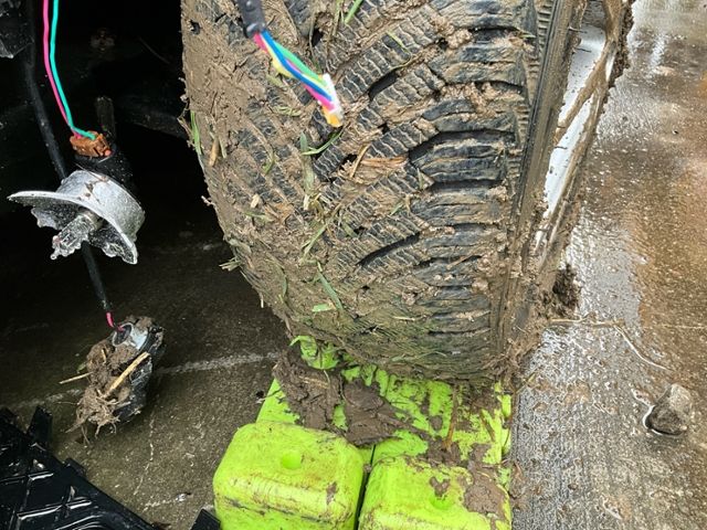 Vorderachse ist beschädigt. Risiko Hinterachse. Risiko Lenkung.
